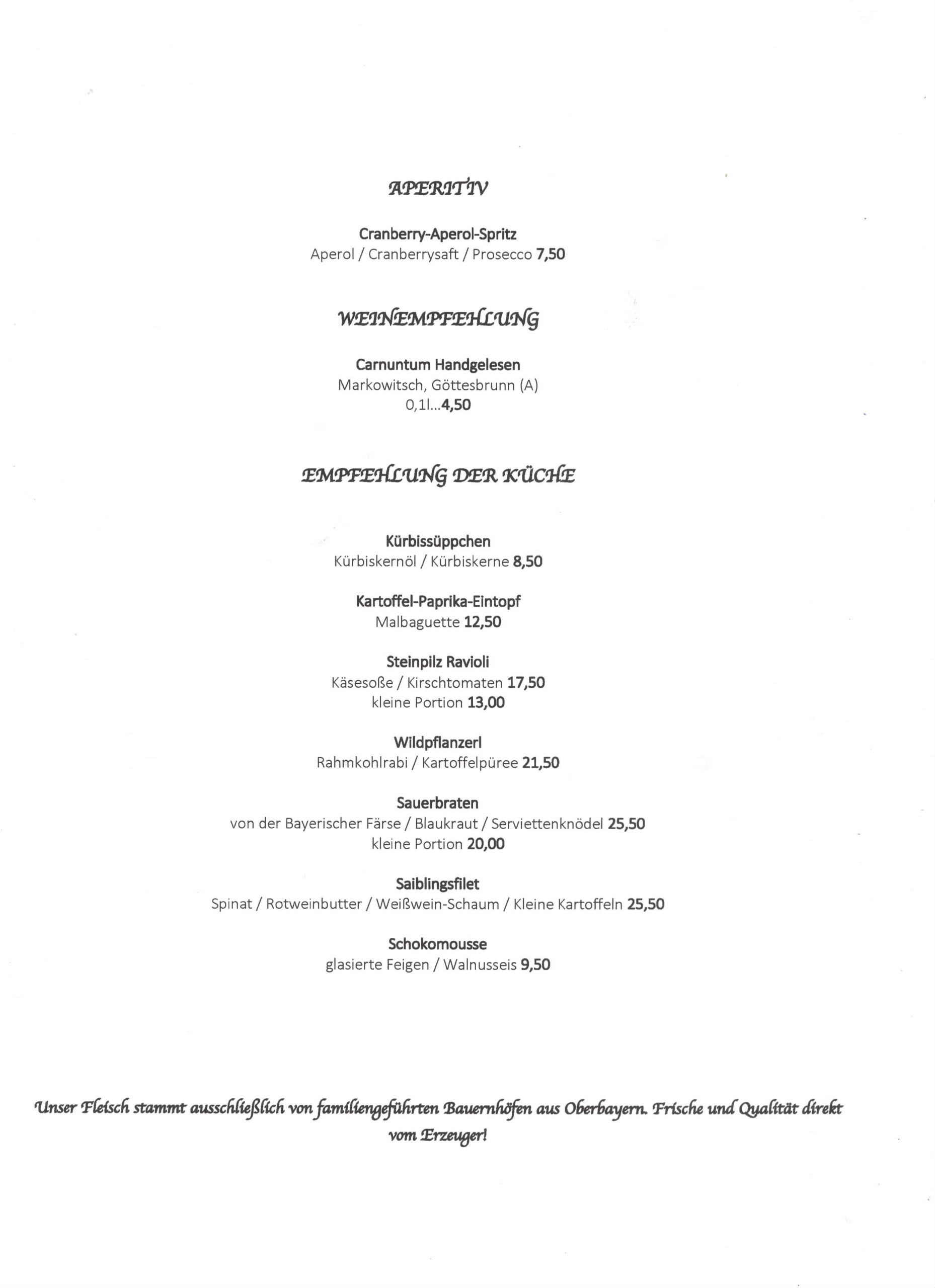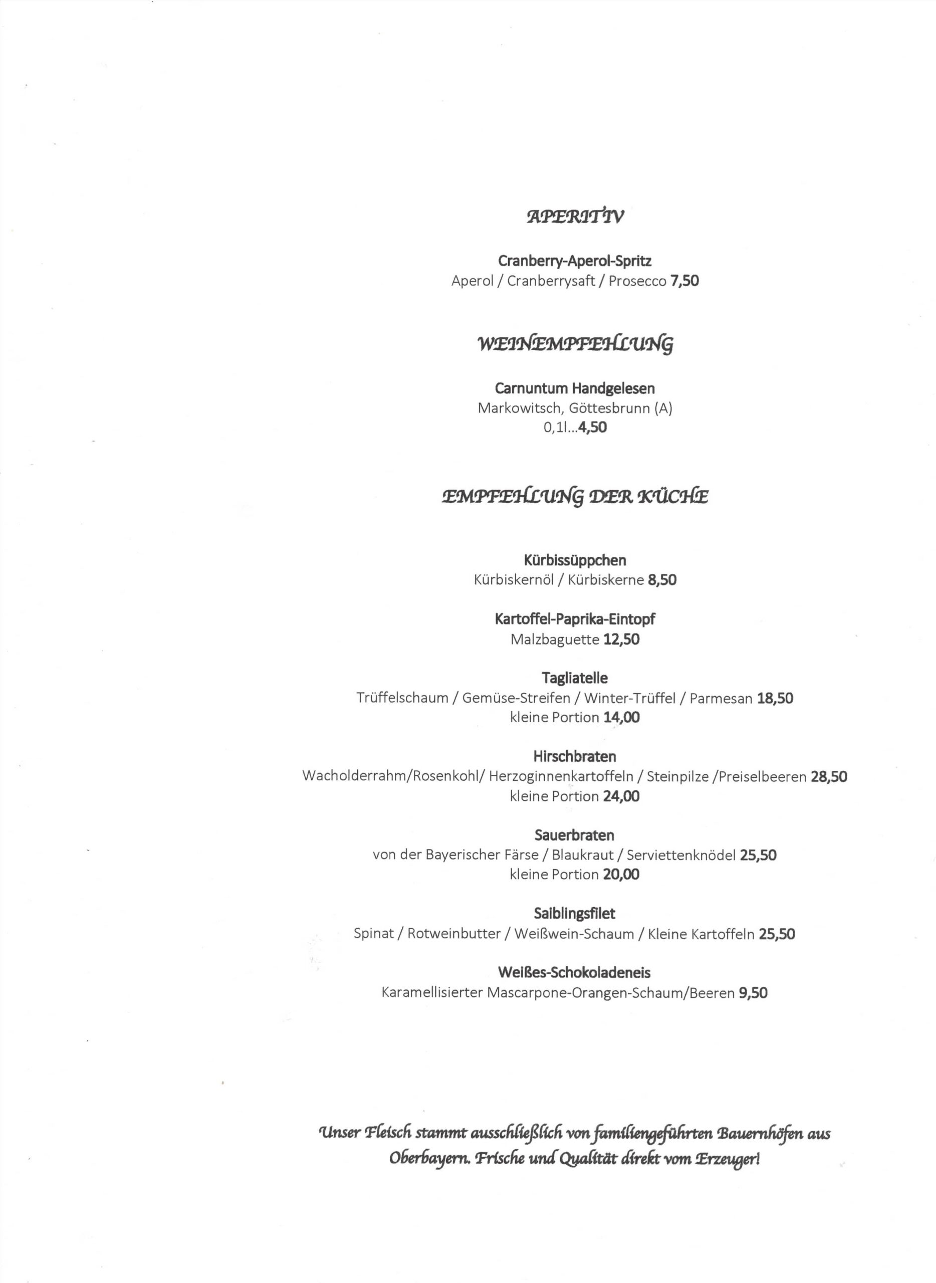 Lassen Sie sich von uns mit traditionellen Schmankerln aus der bayrischen Küche verwöhnen und genießen Sie das liebevoll dekorierte Ambiente unseres im Jahre 1817 erbauten Wirtshauses. Ob zum Mittag- oder Abendessen, zum Nachmittagskaffee oder nur schnell auf ein erfrischendes Getränk – wir freuen uns auf Ihren Besuch.